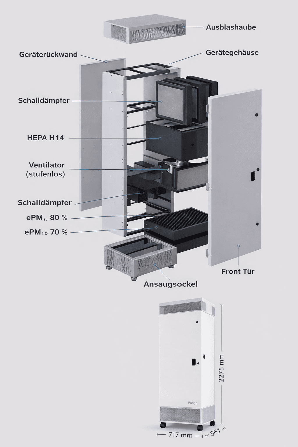 Alle Leistungen, alle Maße, alle Daten – alles über die stationären Luftreiniger Atemrein T 1750