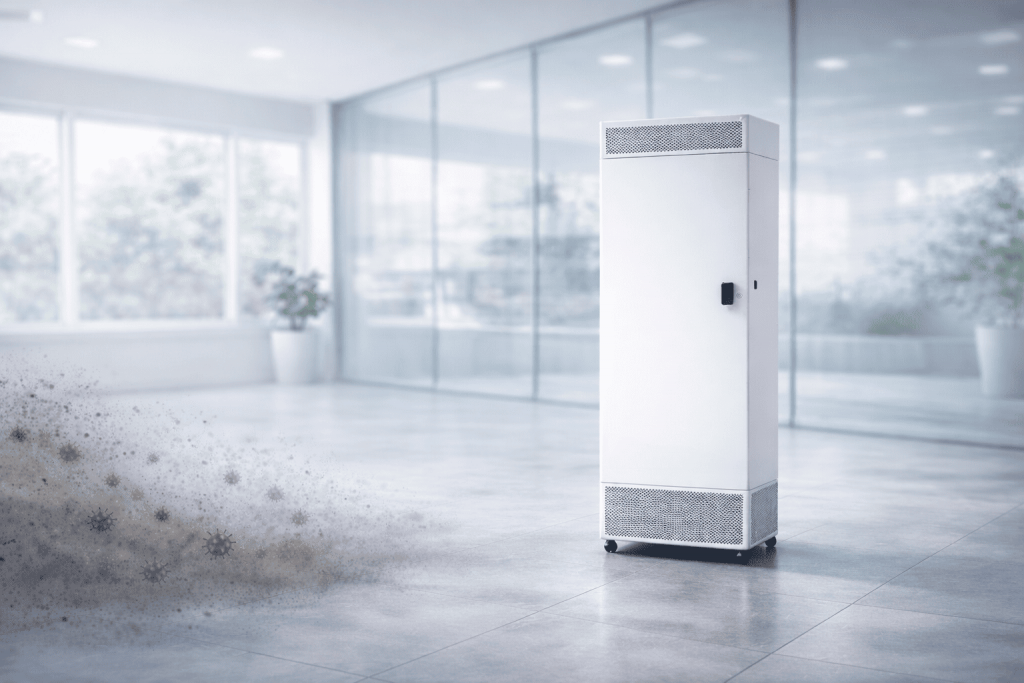 Effektive Luftreinigung für große Räume bis 146 m². Ideal für Gewerbe, Industrie und öffentliche Räume. Reduziert Aerosole, Feinstaub und Schadstoffe zuverlässig.
